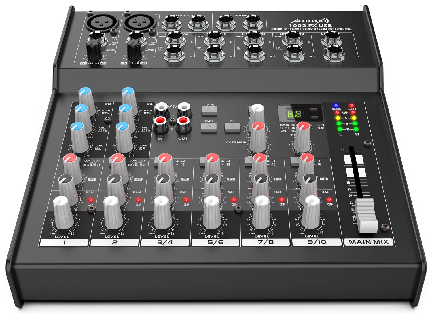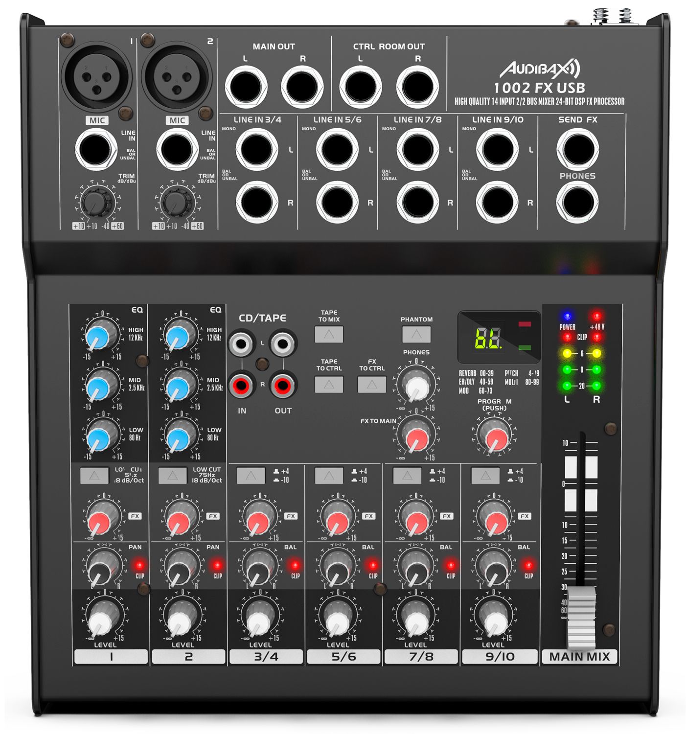 %u200BAudibax 1002 FX USB, mesa de mezclas analógica de 10 canales con DSP de efectos integrados y interface USB.