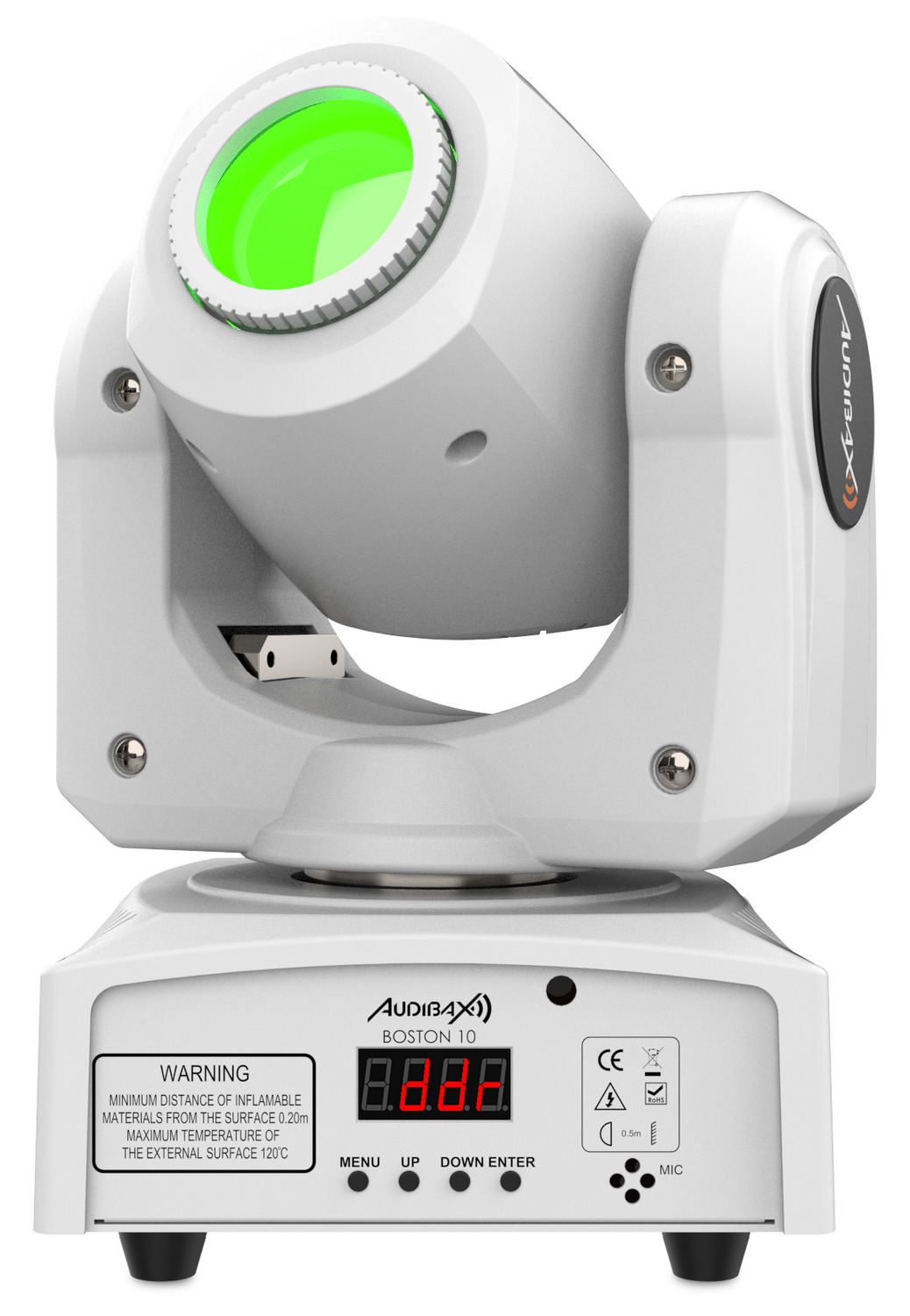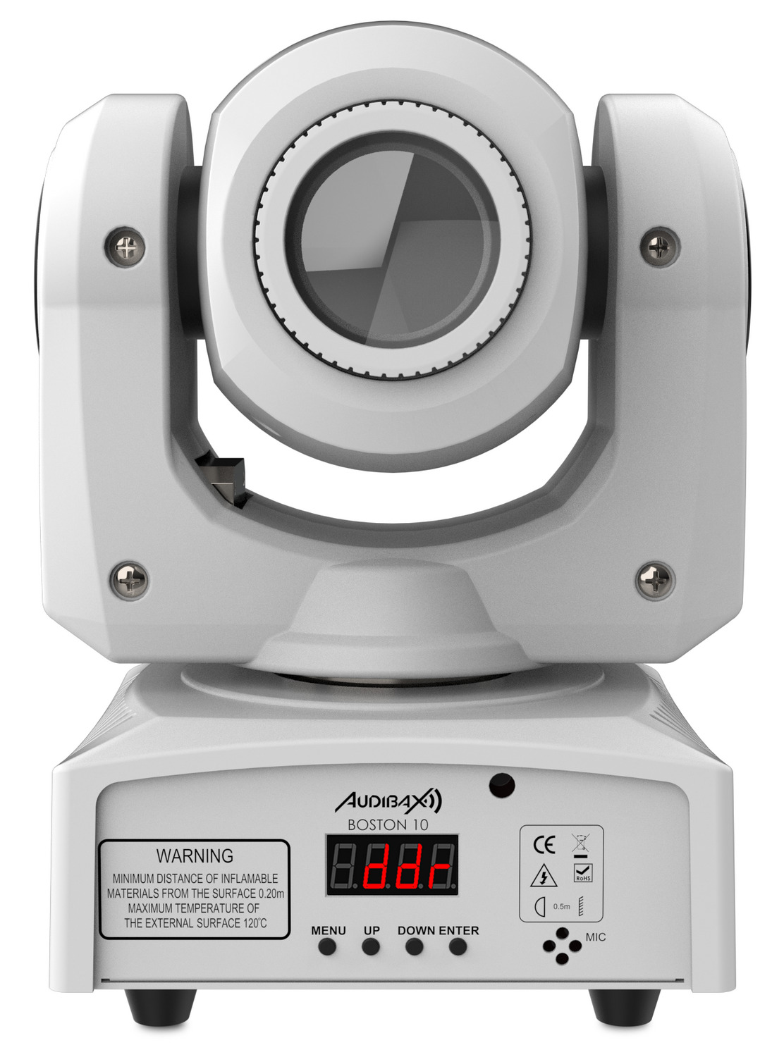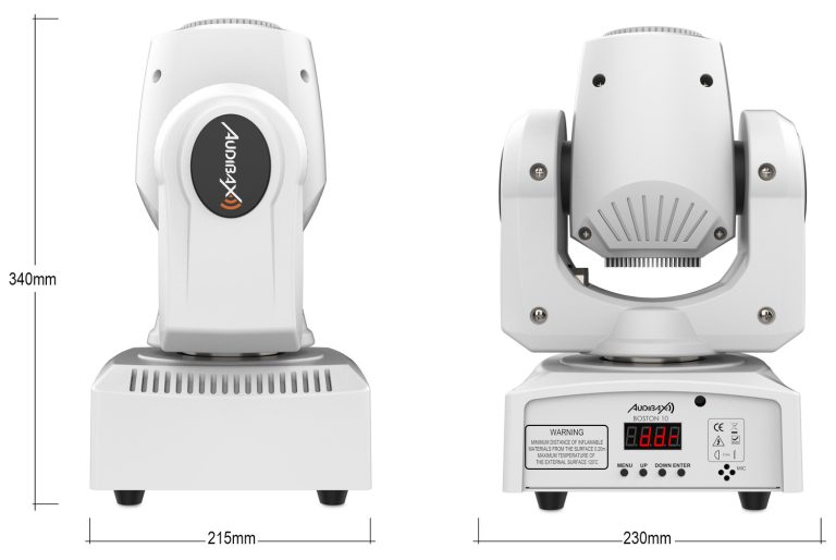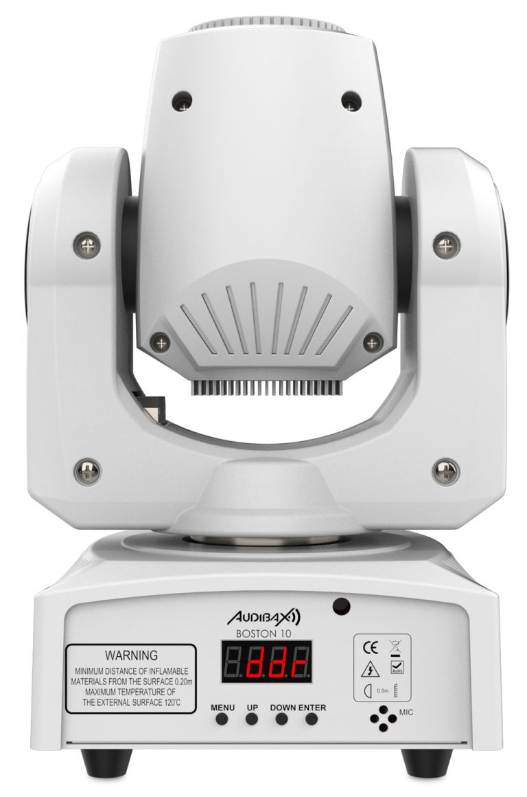 Nuesta cabeza móvil Boston 10 White está equipada con una lente de luz LED blanca de 10W de potencia.