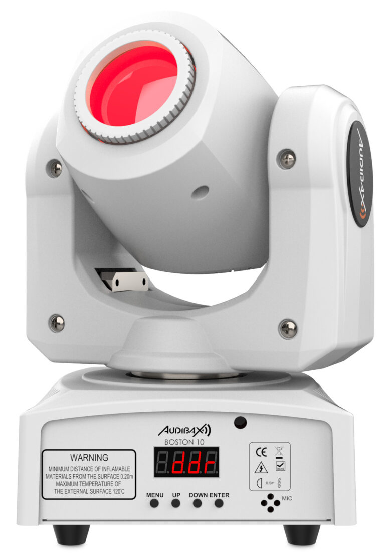 El Audibax Boston 10 White es una cabeza móvil spot de de gran potencia, con la que podrás crear espectáculos hasta ahora nunca vistos gracias a sus 7 colores + 7 gobos fijos giratorios.