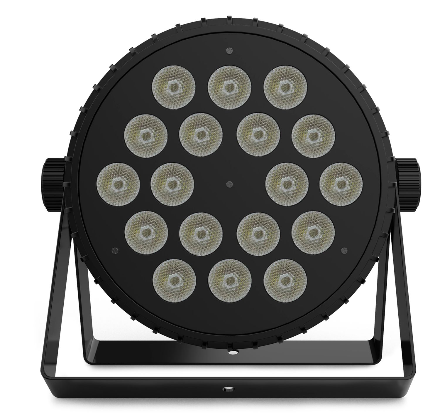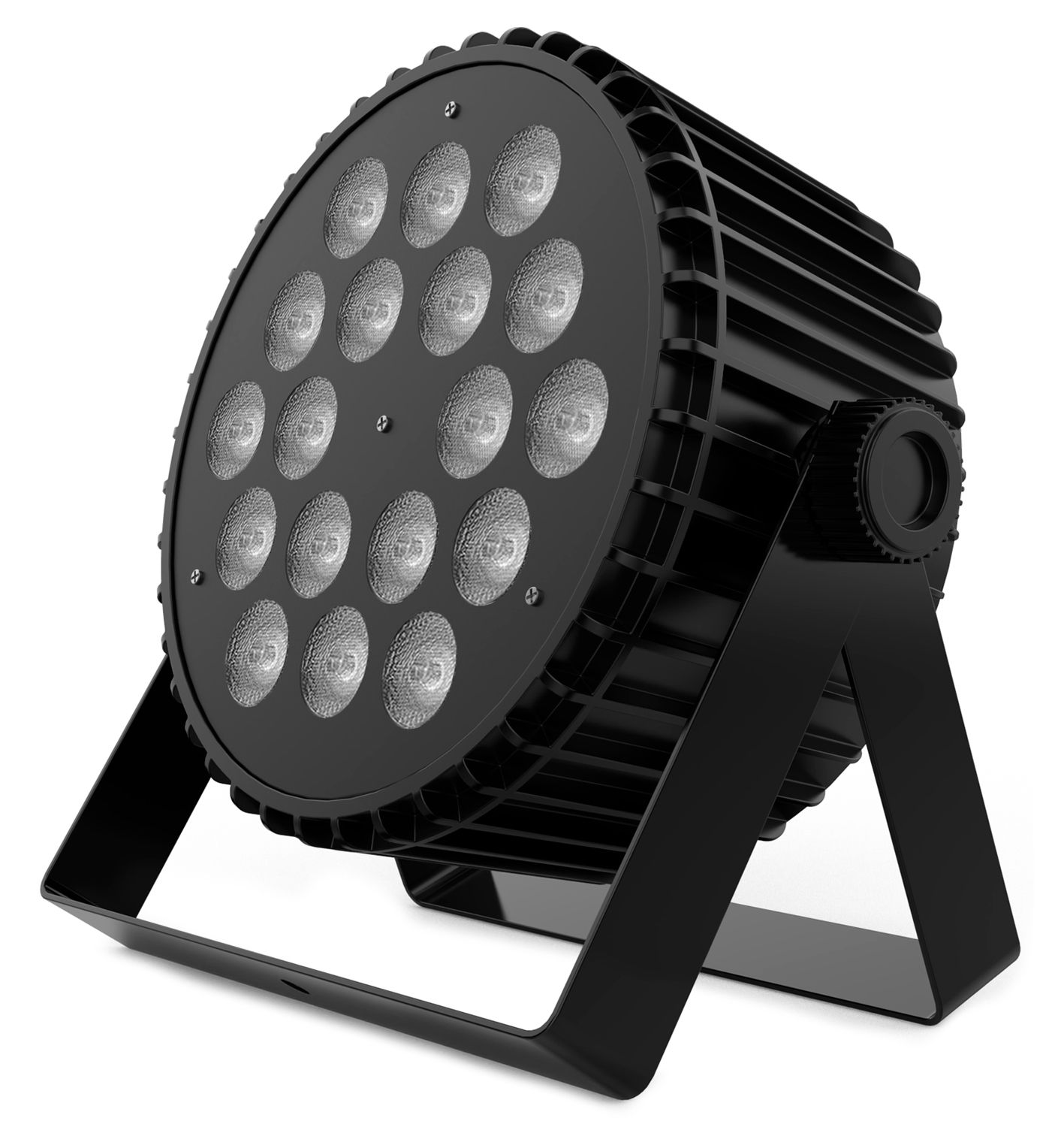 Los 18 LEDs de 12 W de alta eficiencia permiten obtener una amplia gama de colores RGBW, desde suaves tonos hasta tonos cálidos y muy saturados, con un ángulo de apertura de 30° y un alto nivel de iluminación. Su funcionamiento es muy silencioso gracias a la ventilación silenciosa.