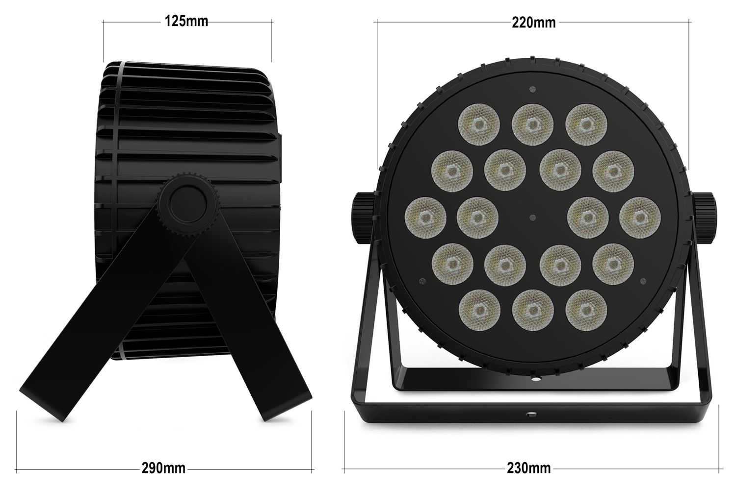 El Audibax Dallas 216 tiene un diseño muy plano, el foco PAR profesional de Audibax es la elección ideal para iluminación profesional.