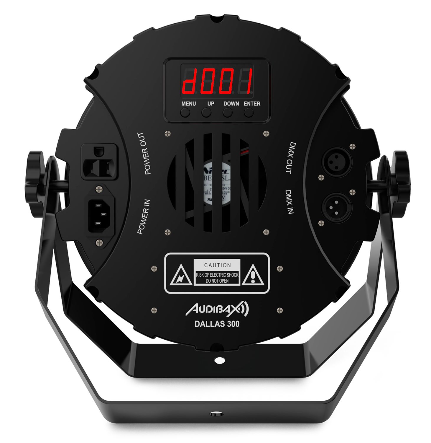 Dispone de una carcasa de aluminio negra de fundición, con entradas y salidas XLR de 3 para la señal DMX. El Dallas 300 de Audibax incluye un soporte multifuncional que ofrece una amplia variedad de opciones de montaje.