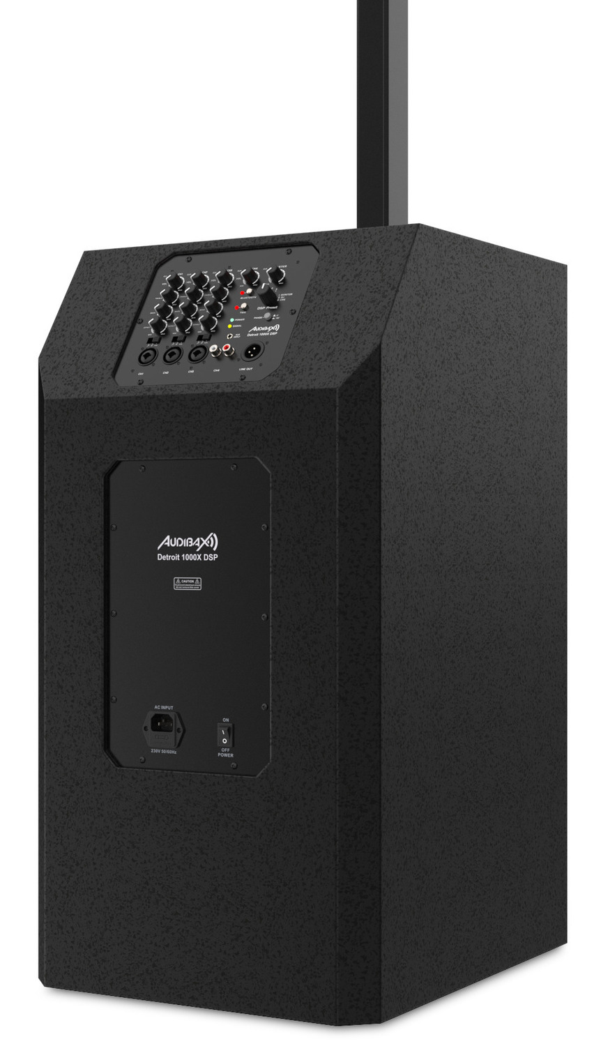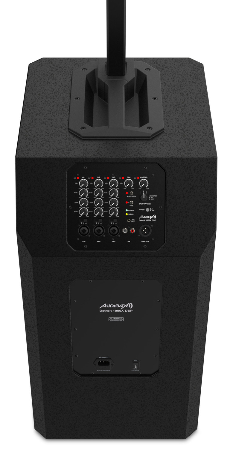 • El Audibax Detroit 1000X DSP es un sistema PA compuesto por una columna y un subwoofer de 12 pulgadas, que emite una calidad de sonido inigualable.