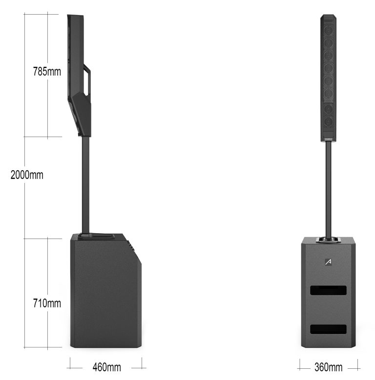 • Cuenta con un transductor de alta frecuencia compuesto por 8 piezas de 3 pulgadas y un subwoofer de 12 pulgadas, ofreciendo una respuesta de frecuencia de hasta 20kHz y un SPL de 125dB.