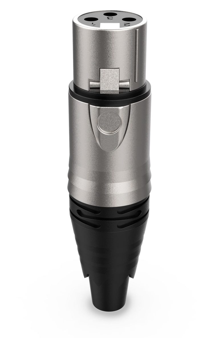 El Conector XLR Hembra de la serie Evolution de Audibax ofrece múltiples características que lo convierten en un conector de máxima calidad y fiabilidad. Proporciona una mejora en la integridad de contacto y el alivio de la tensión del cable es del tipo de plato, lo que produce una mayor fuerza de extracción. Se trata de un conector con un cierre metálico sólido mejorado que es más grande y mucho más fácil de manejar. Además, posee una alta protección a la tensión de flexión del cable.