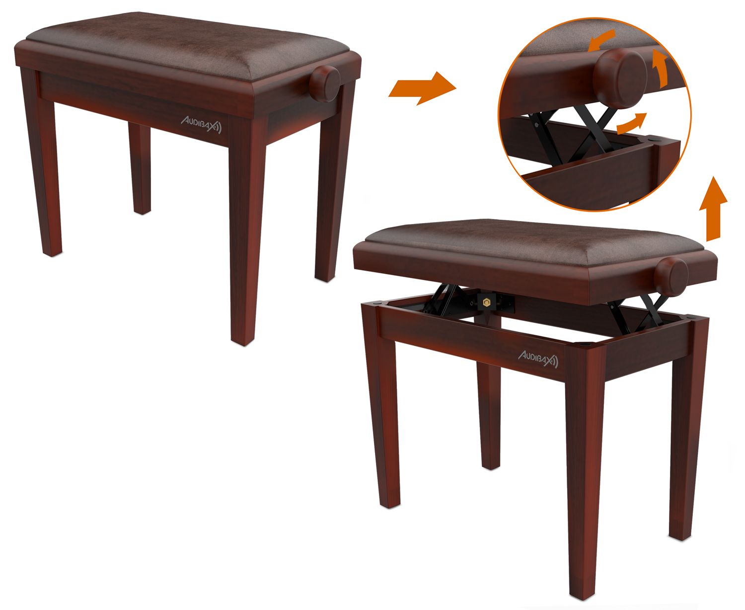 Audibax KB600 Nogal es la opción ideal si estás buscado un banco de piano de alta calidad ya sea para usar diariamente o en tus conciertos, clases de música, prácticas, etc.