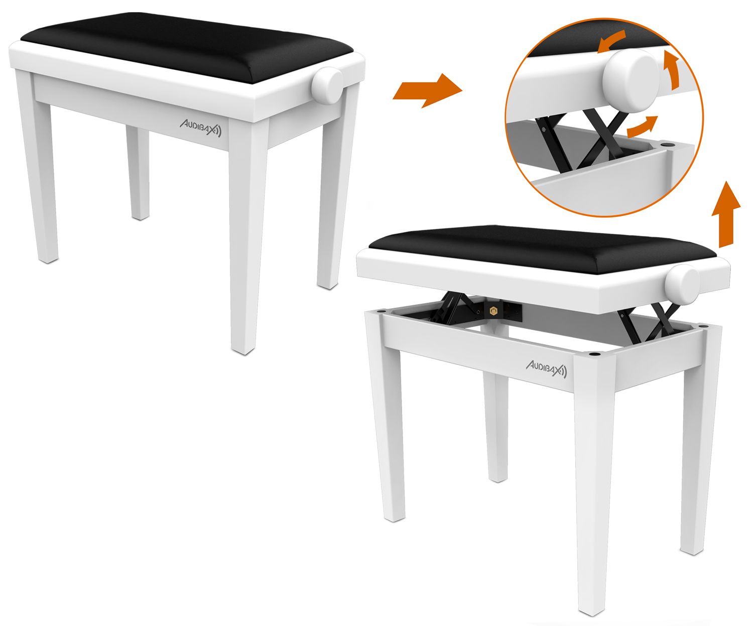 Audibax KB600 White Banco para Piano Teclado Ajustable Regulable. Acolchado