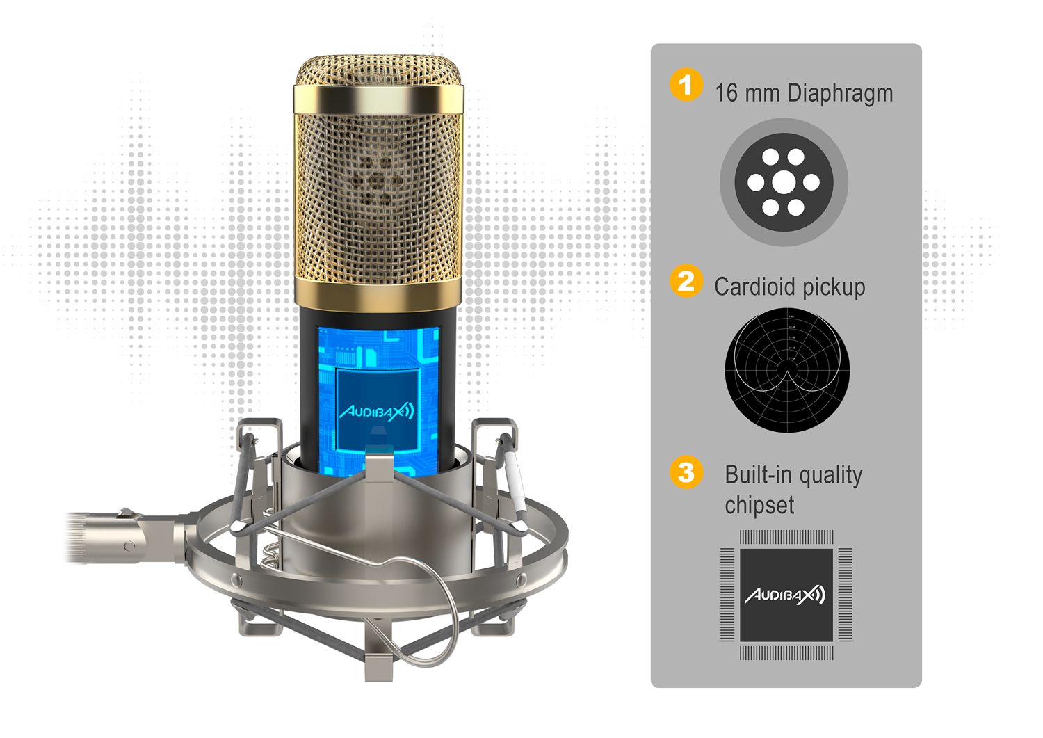 Audibax London 800 USB Gold Pack Microfono para Podcast / Grabación / Gamers Pack