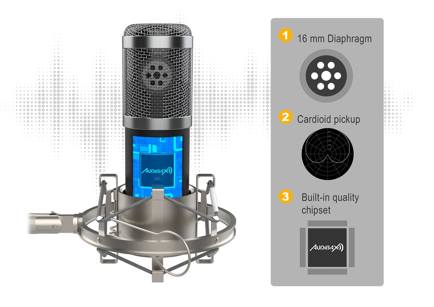 Audibax London 800 USB Silver Pack Microfono para Podcast / Grabación / Gamers Pack
