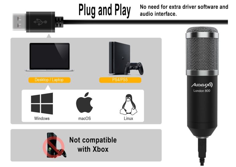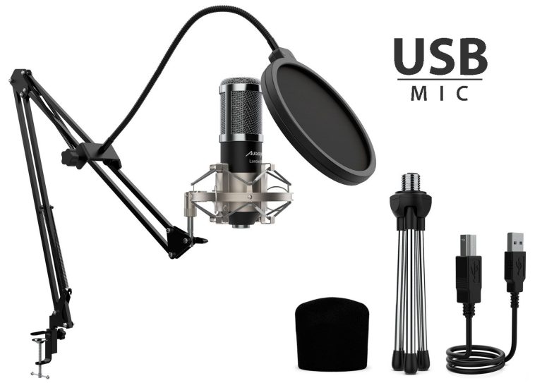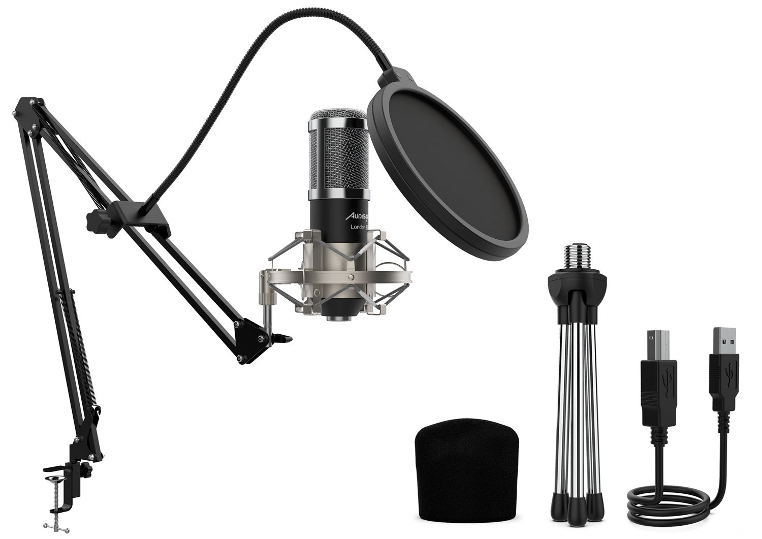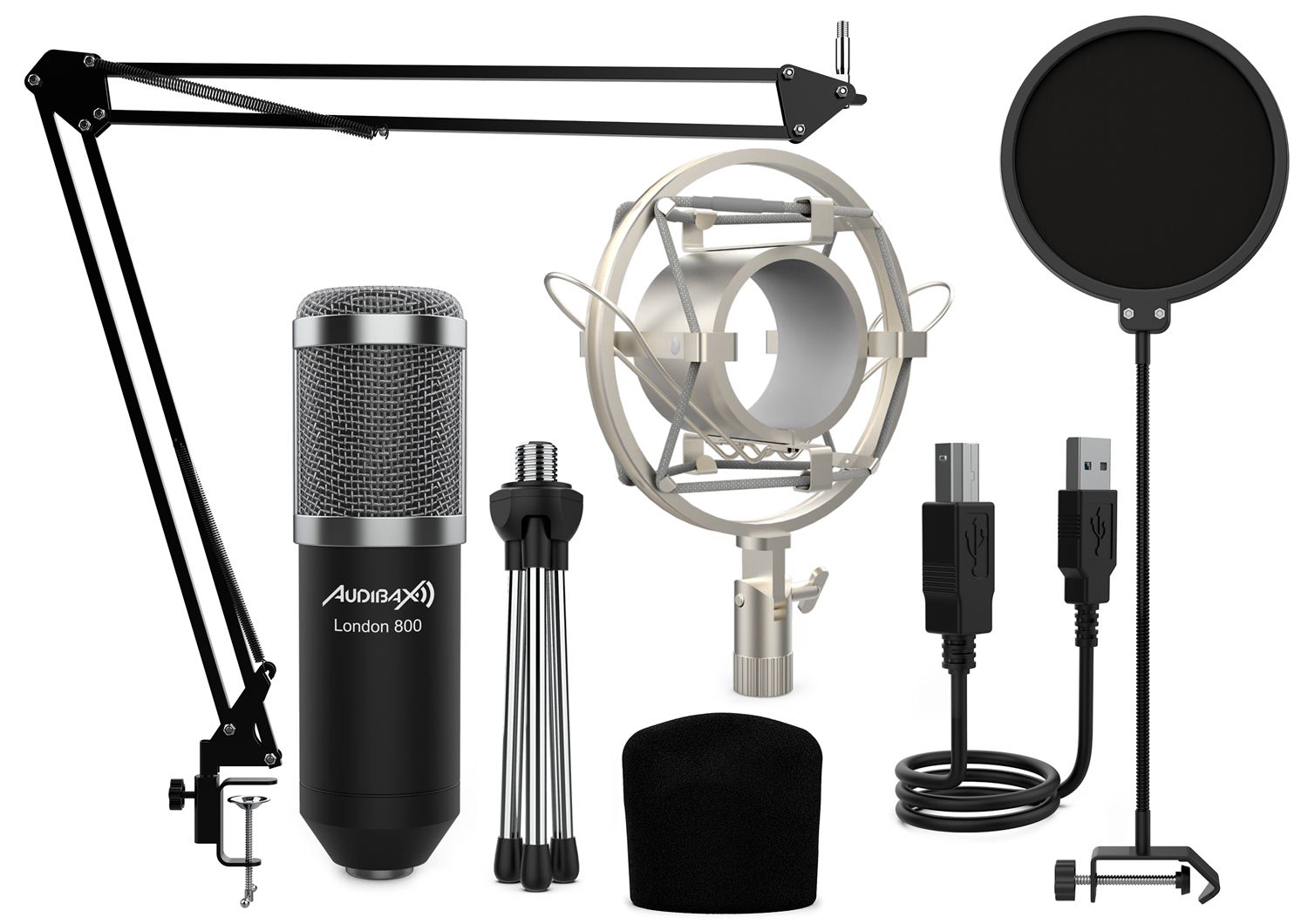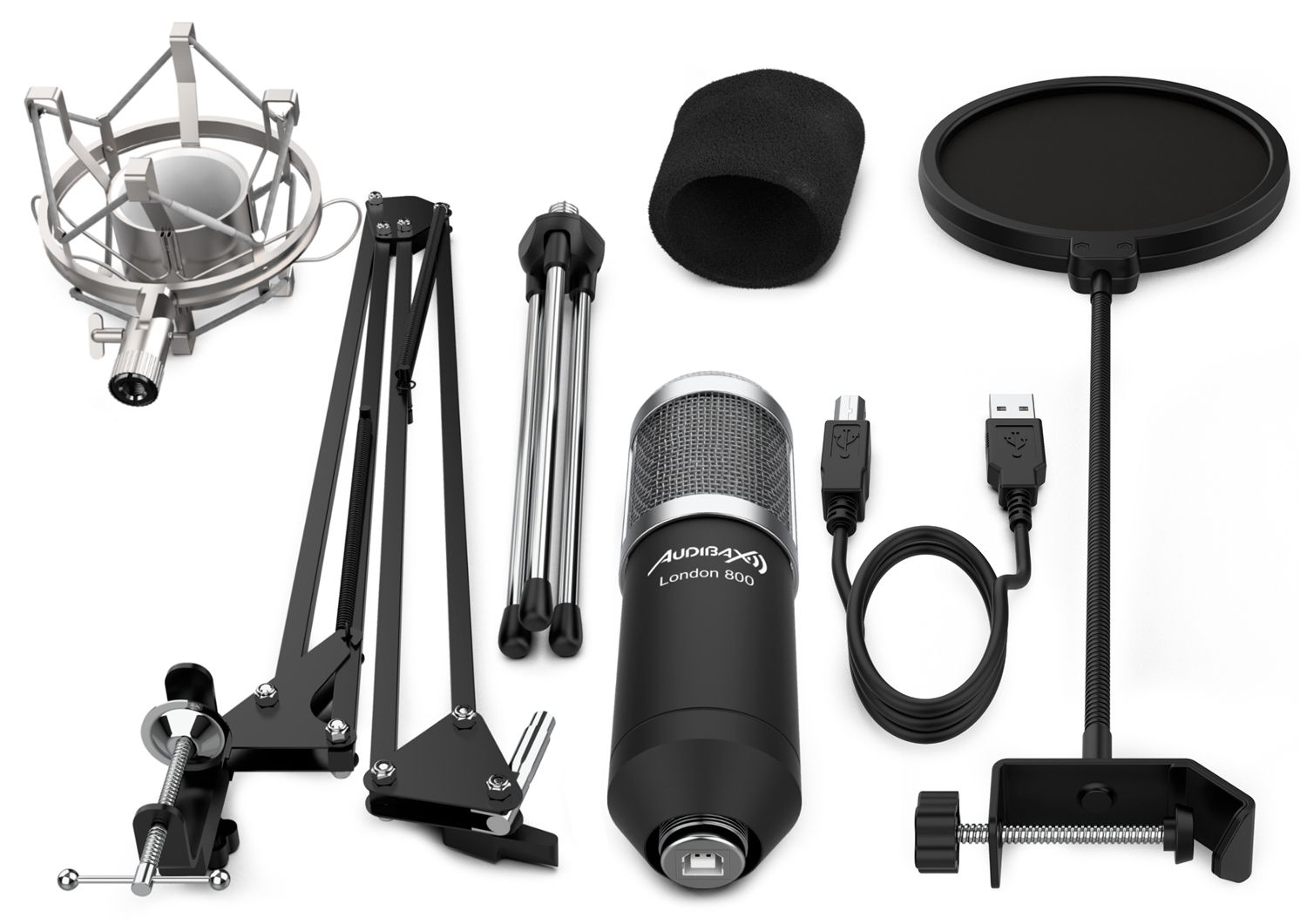 Audibax London 800 USB Silver Pro Pack Microfono para Podcast / Grabación / Gamers Pack