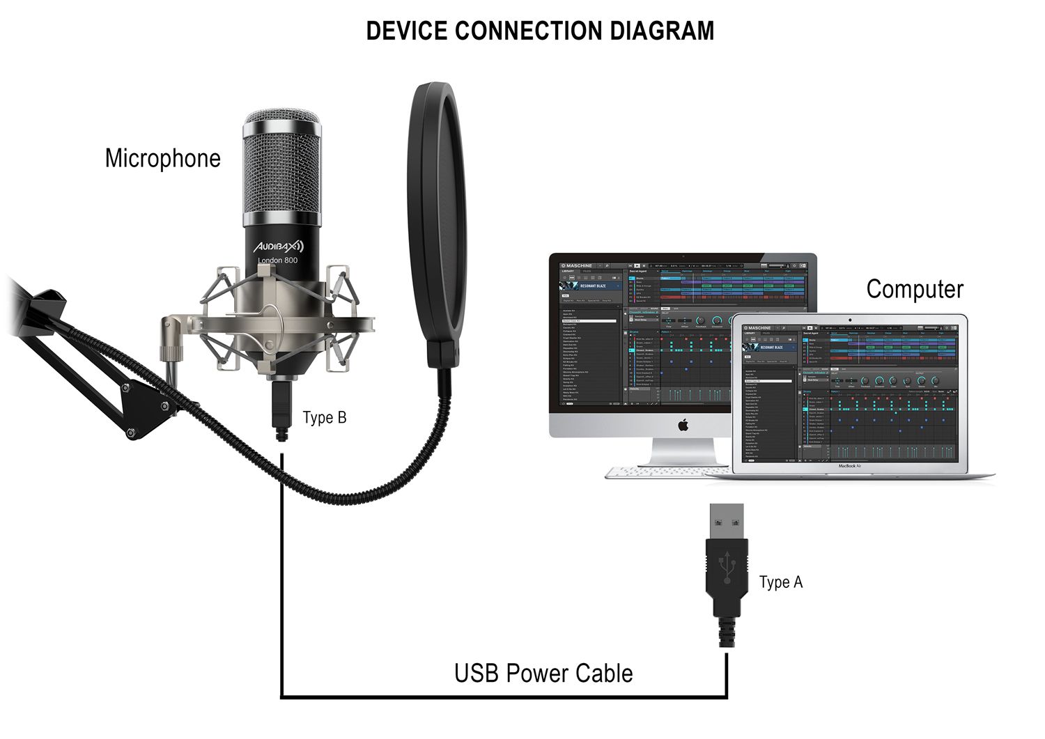 El micrófono London 800 USB, es un micrófono de estudio de gran diafragma con patrón polar cardioide el cual proporciona un gran rendimiento gracias a su transductor de 16mm de alta calidad y una conversión analógico-digital prácticamente sin pérdidas gracias a su conexión directa al puerto USB.