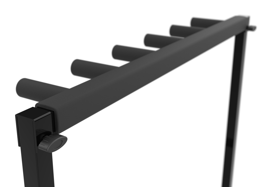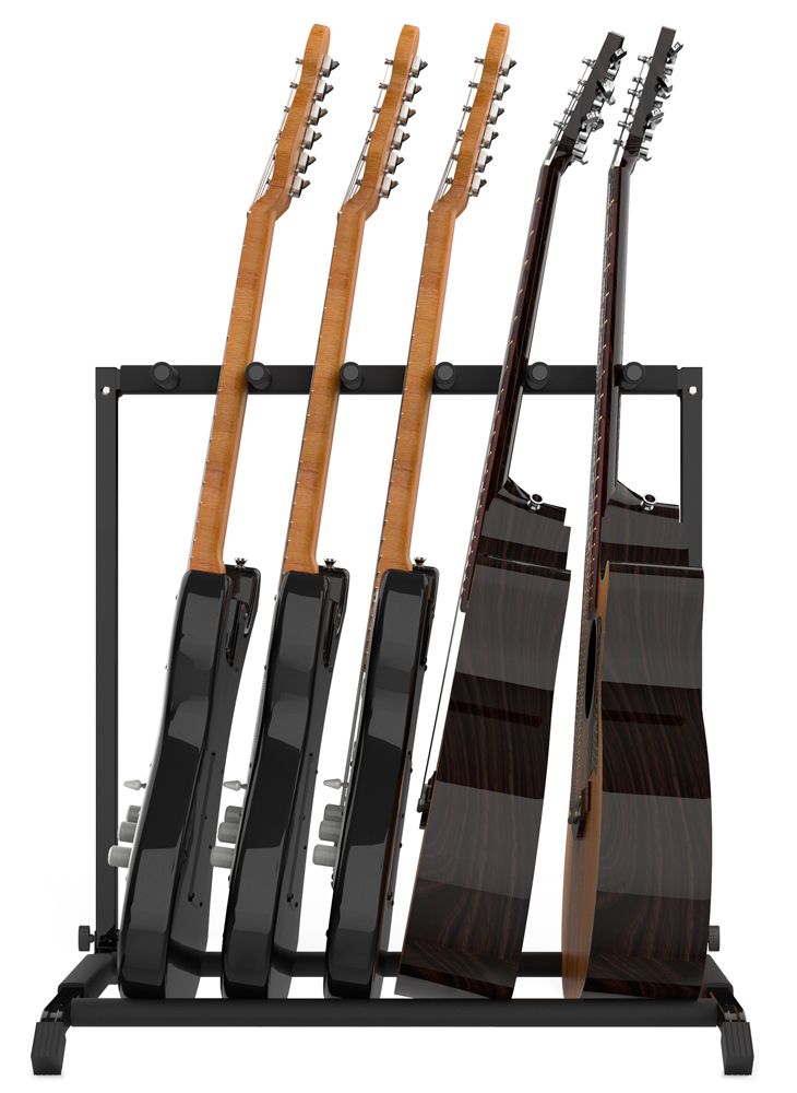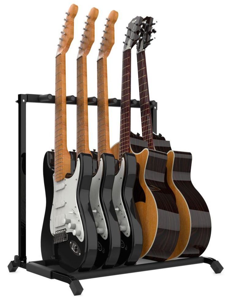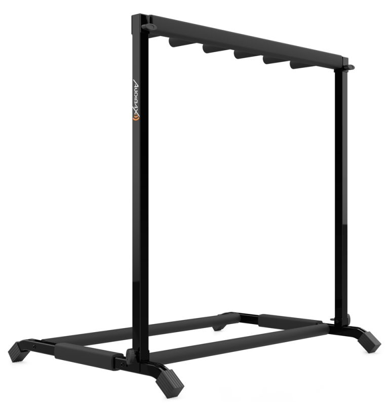 El soporte plegable de Audibax puedes tener hasta 5 guitarras guitarras. Manten tus guitarras y bajos al alcance de la mano. Perfecto para escenario y estudio por igual, viene en dos partes que se pliegan de forma clara y compacta.