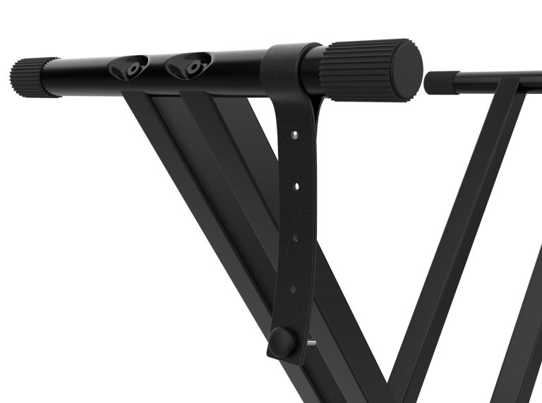 Con este soporte, tu teclado se podrá asegurar con dos correas de seguridad situadas en los laterales, las cuales se pueden fijar directamente a tu teclado añadiendo así doble seguridad y manteniéndolo perfectamente estable.