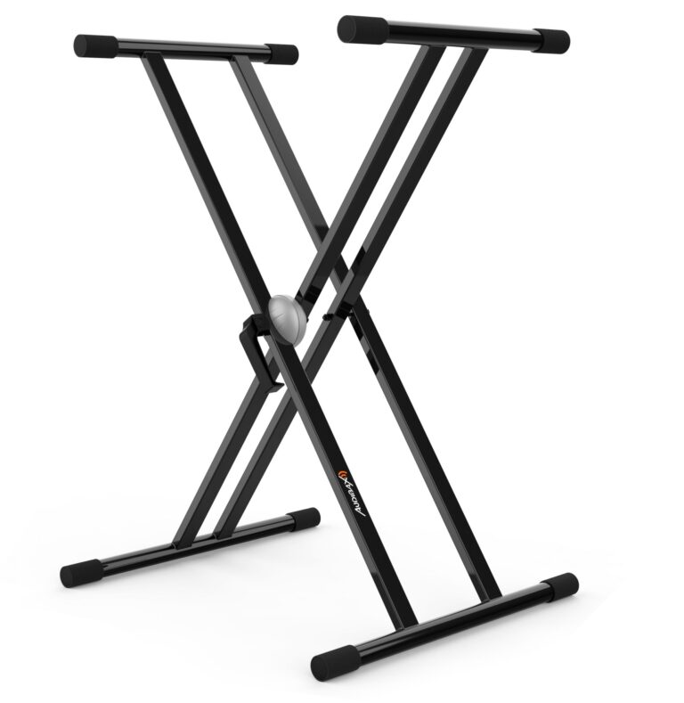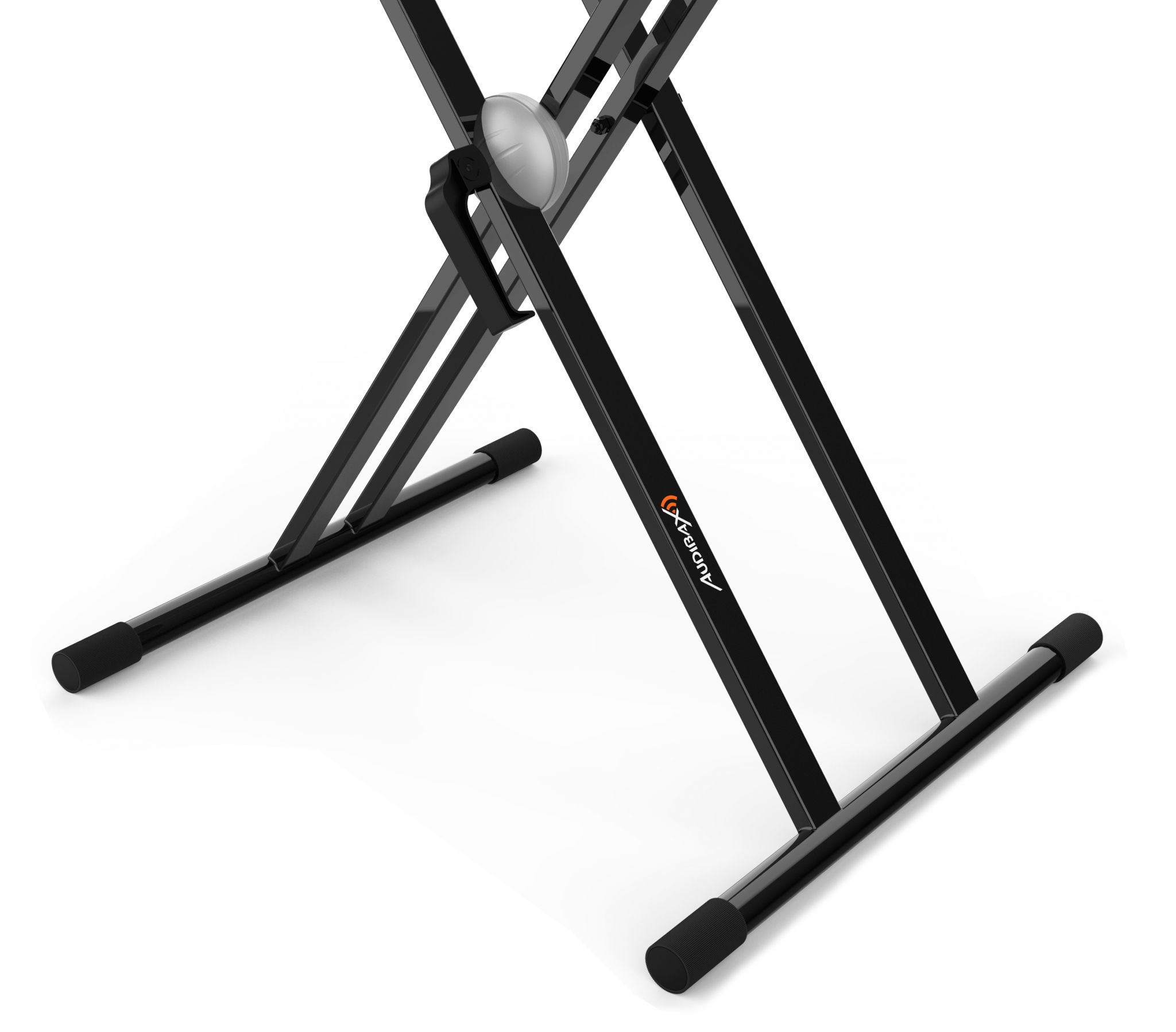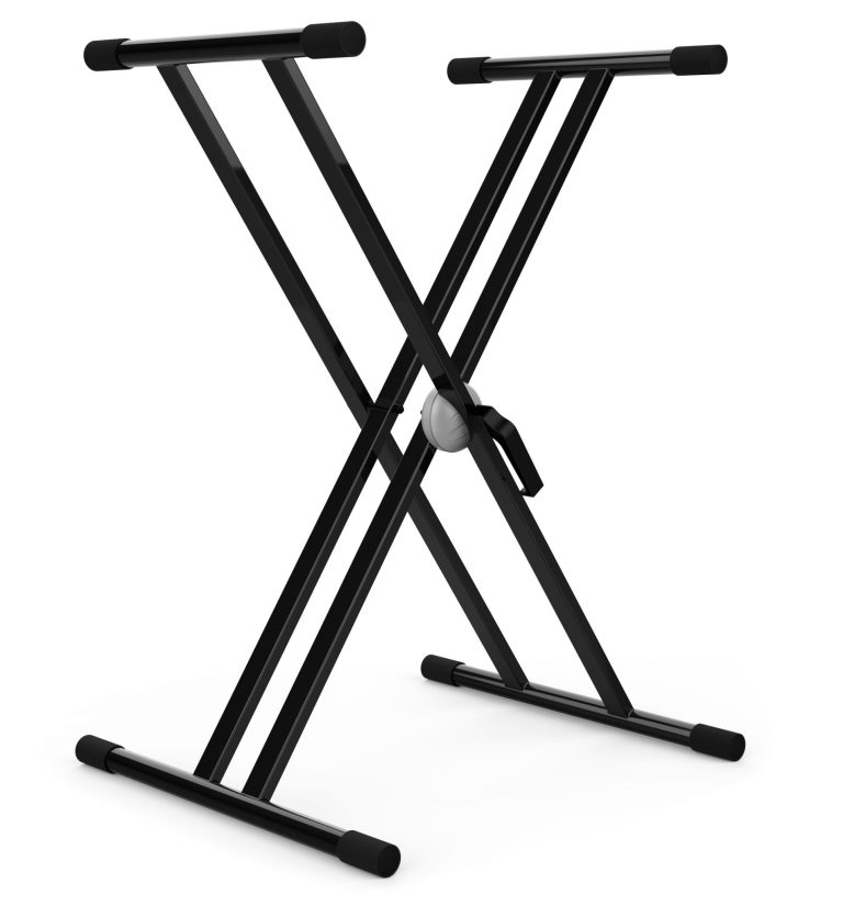 Soporte teclado Profesional muy robusto ( Doble Tijera ),Sistema de regulación en altura profesional SNAP LOCK con diseño de doble estructura..