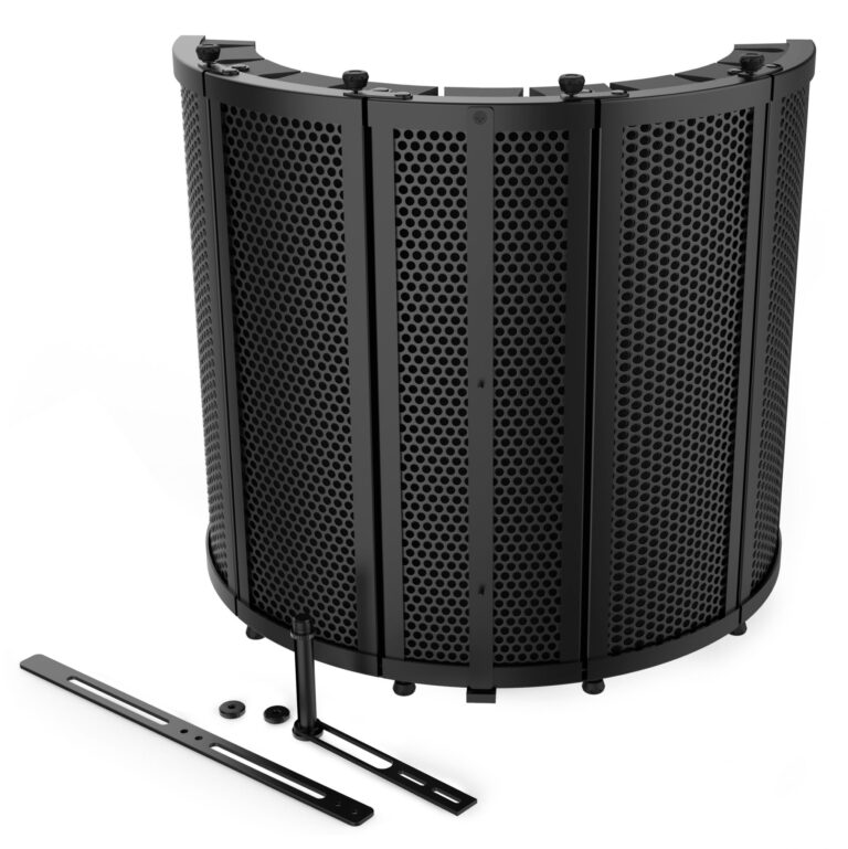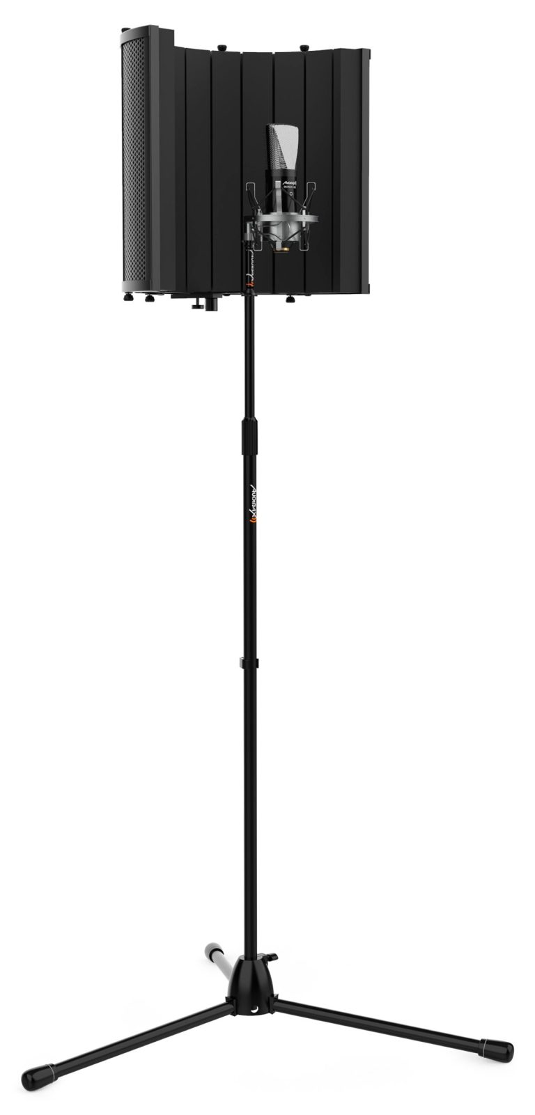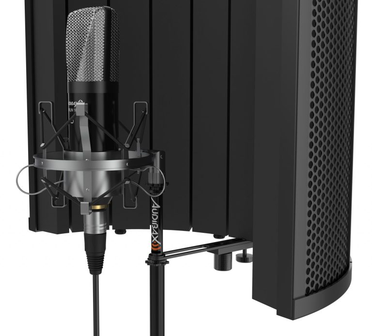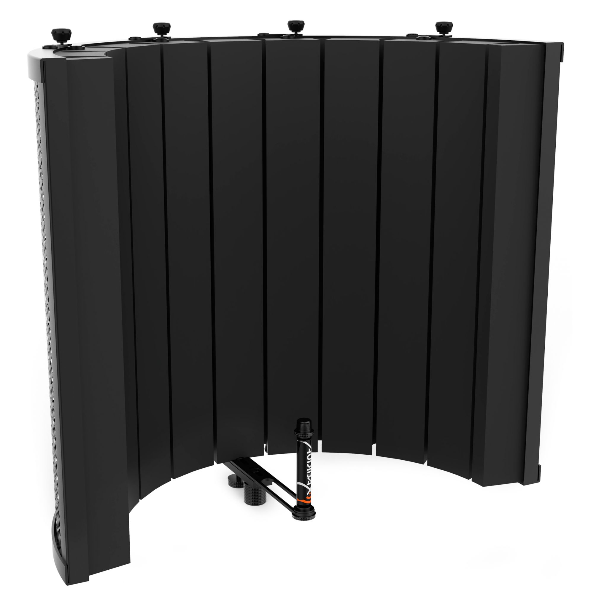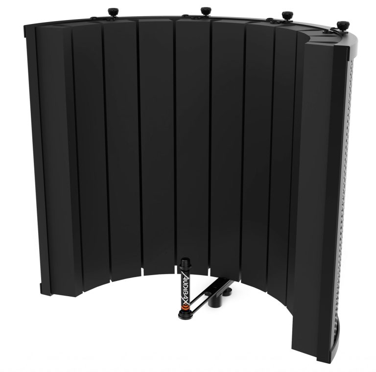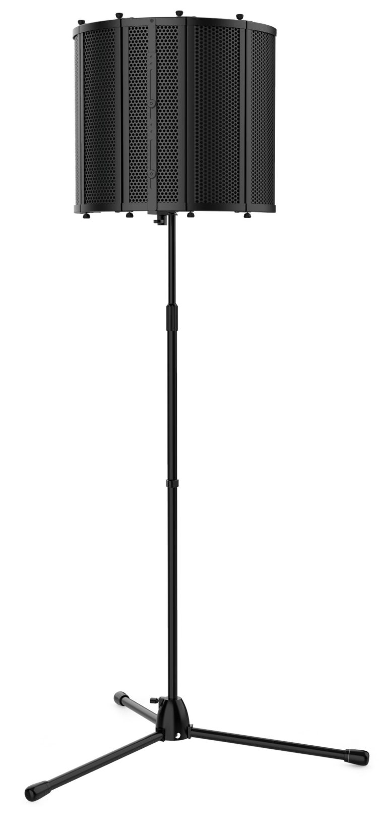 El Audibax RF10 Black es un filtro anti reflexiones para grabaciones de estudio. Gracias a su sencillo montaje y su tamaño compacto lo podrás montar en muy poco tiempo y colocar en cualquier lugar. La construcción de aluminio con bajo peso y la calidad acústica harán de este producto un esencial dentro de los home estudios Se fija con un soporte de metal en un solo pie de micrófono.