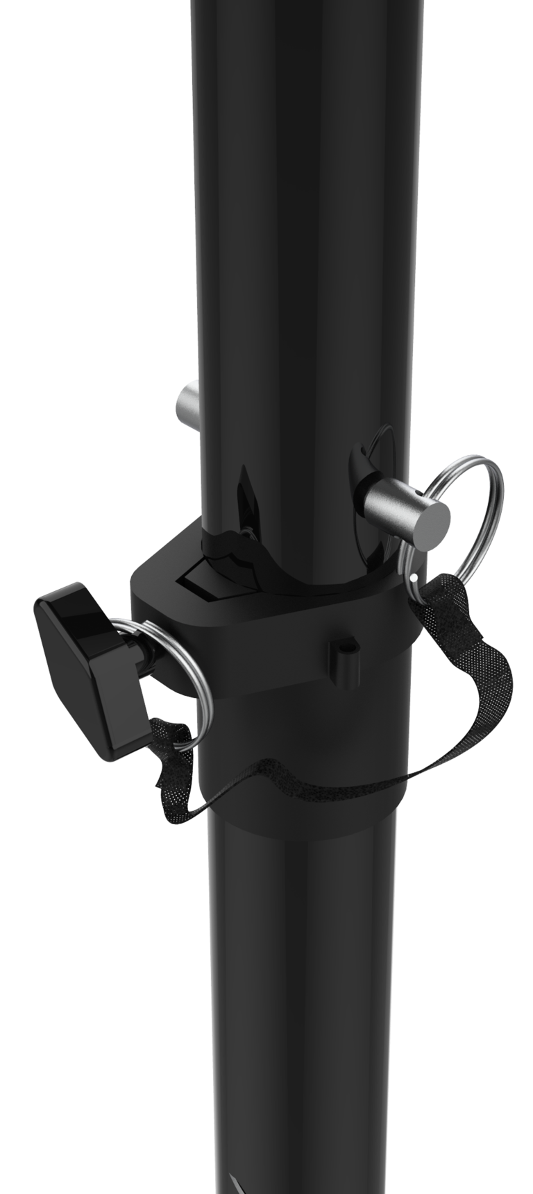 Es ideal para colorar el altavoz a cualquier altura ya que cuenta con seis niveles de altura ajustables (entre 890mm y 1490mm) con un tornillo de bloqueo que no raya, dándole la oportunidad de obtener la altura deseada. Se incluye un pasador de seguridad adicional. Además, tiene un discreto clip de plástico que sirve para recoger los cables del dispositivo.