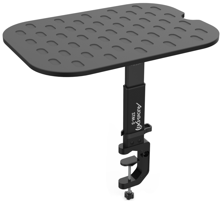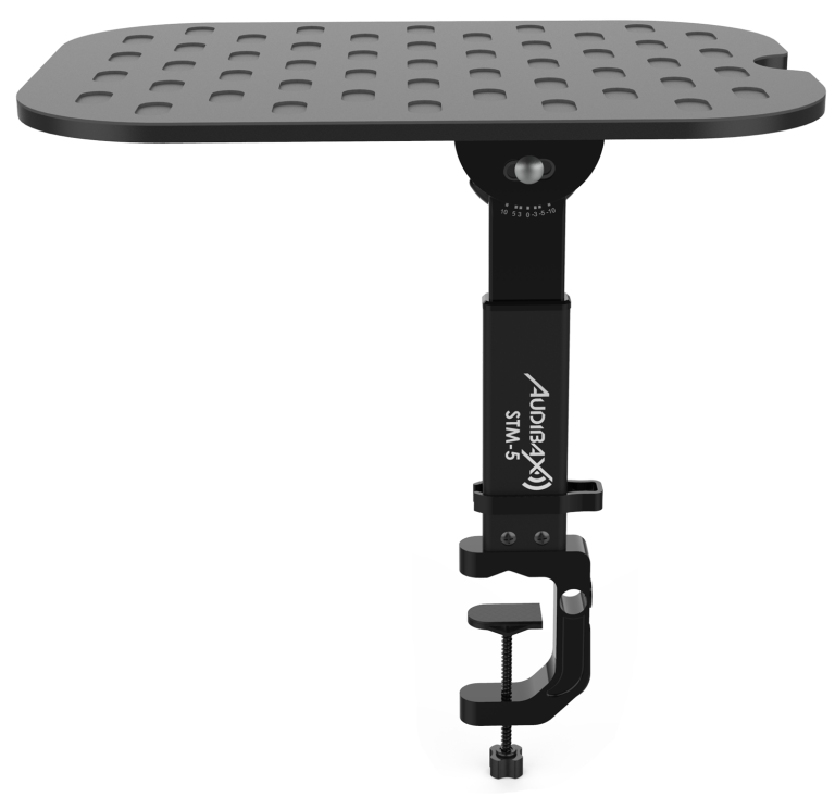 Audibax Neo STM-5 es un soporte de altavoz de escritorio hecho de acero sólido. la altura y ángulo ajustable te permiten establecer la posición óptima o deseada del altavoz. Cuenta con una tapa de goma en la placa superior y cuatro almohadillas de goma que reducen la vibración durante la experiencia auditiva. Su estilo ahorra gran cantidad de espacio y te permite disfrutar y sentir el sonido perfecto.