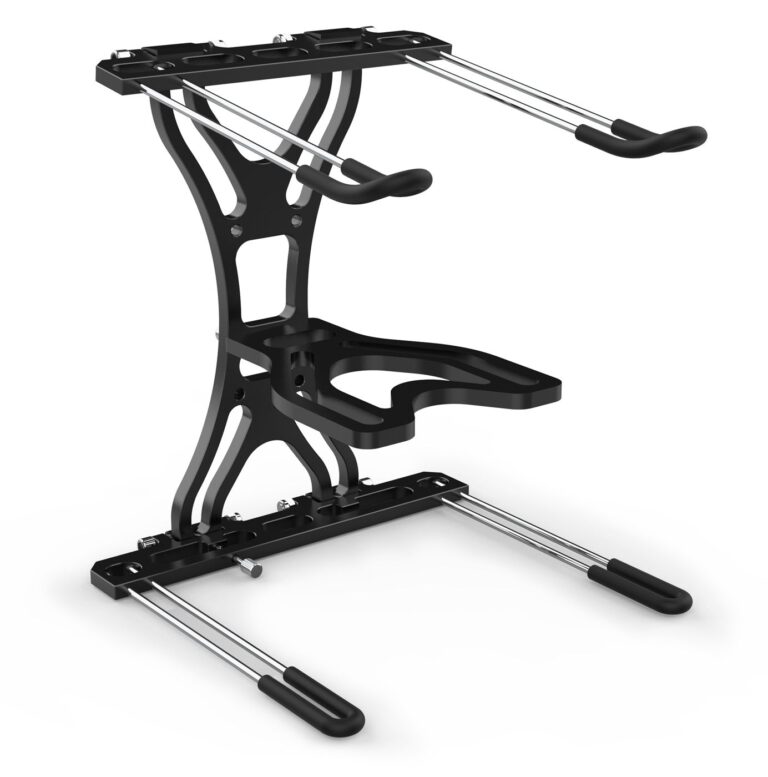 El TOP 10 de Audibax es un soporte extremadamente estable y ligero de alta calidad para DJs. Posee múltiples características que hacen que este soporte sea la opción ideal: solidez, construcción segura, estabilidad, portabilidad, plegable, diseño ligero, y sobre todo, muy asequible. Además, cuenta con una sub bandeja extraíble donde se puede poner otros aparatos, como por ejemplo una interface.