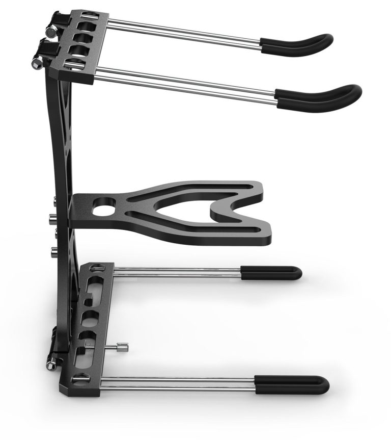El Top 10 está diseñado para permitir que haya un flujo de aire y evitar así el sobrecalentamiento del equipo. En todas las bases se incluyen gomas antideslizantes que proporcionan una mejor fijación a la superficie del soporte. Es un soporte plegable y destaca por su rápido montaje, siendo muy sencillo de transportar ya que además incluye una funda de transporte que protege el soporte de cualquier golpe, rasguño o suciedad.