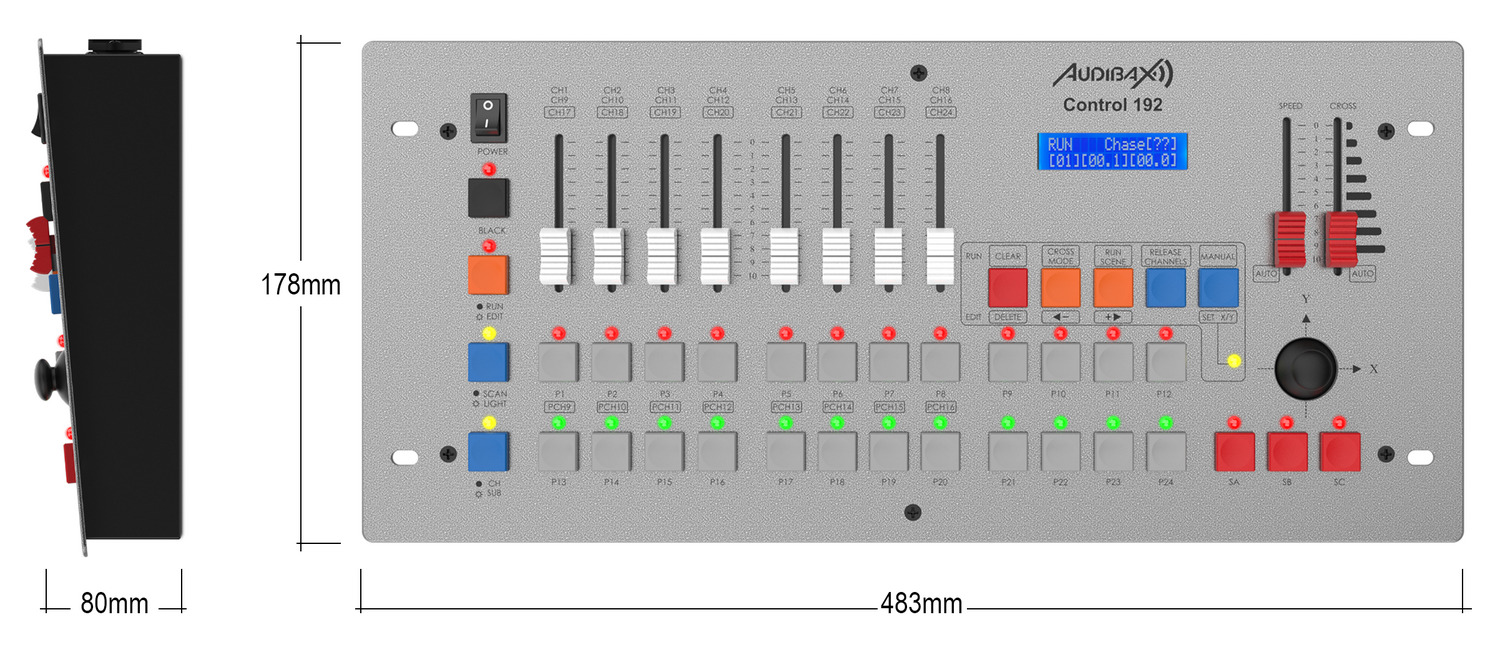 DMX512 controllerControl of 12 Fixtures with 16 DMX channels each