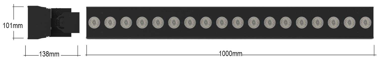 Notre Bar 1812 RGBWAUV est équipée de 18 LED RGBWAUV 6-en-1 d’une puissance de 12W.