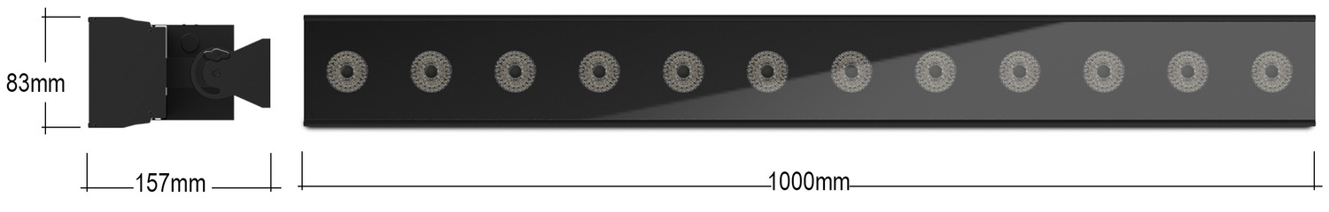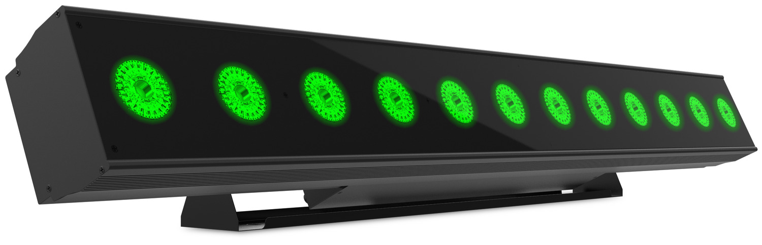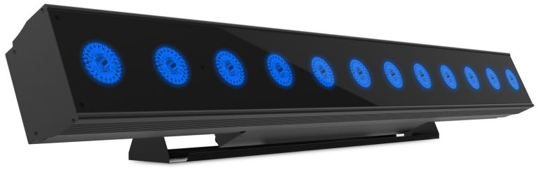Notre Bar Event 1212 RGBWAUV est équipée de 12 lampes LED RGBWAUV 6-en-1 d’une puissance de 12W.