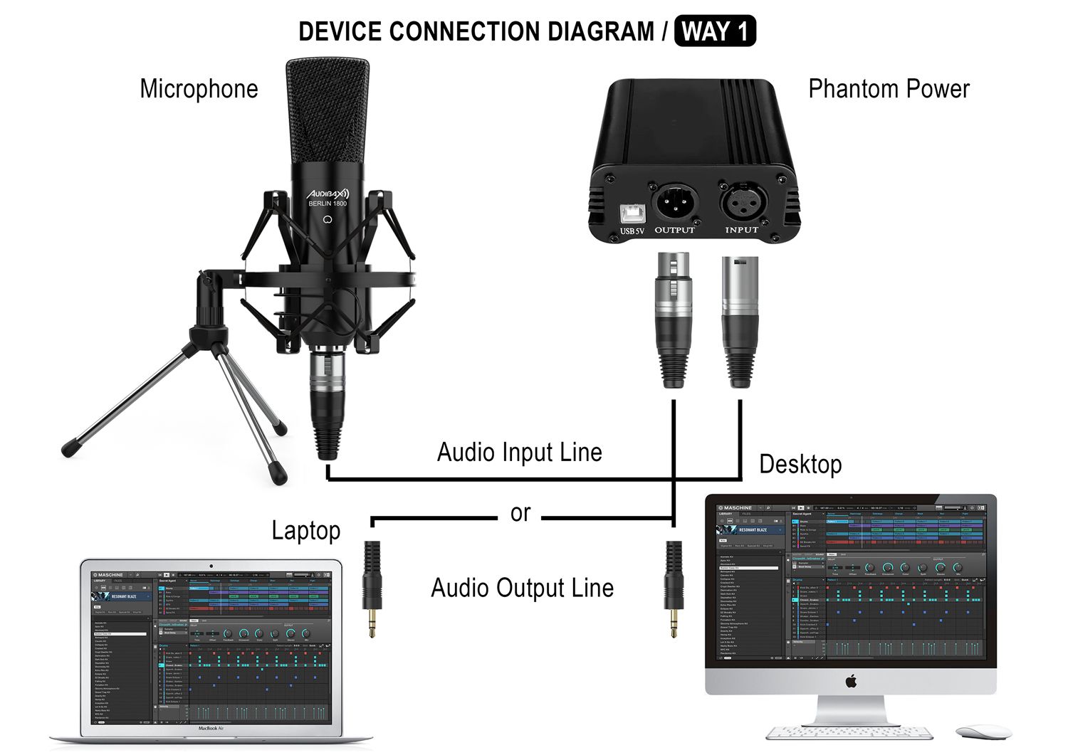 Audibax Berlin 1800 Black Pack Large Diaphragm Studio Microphone