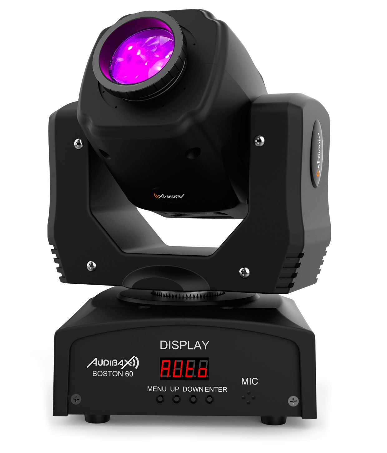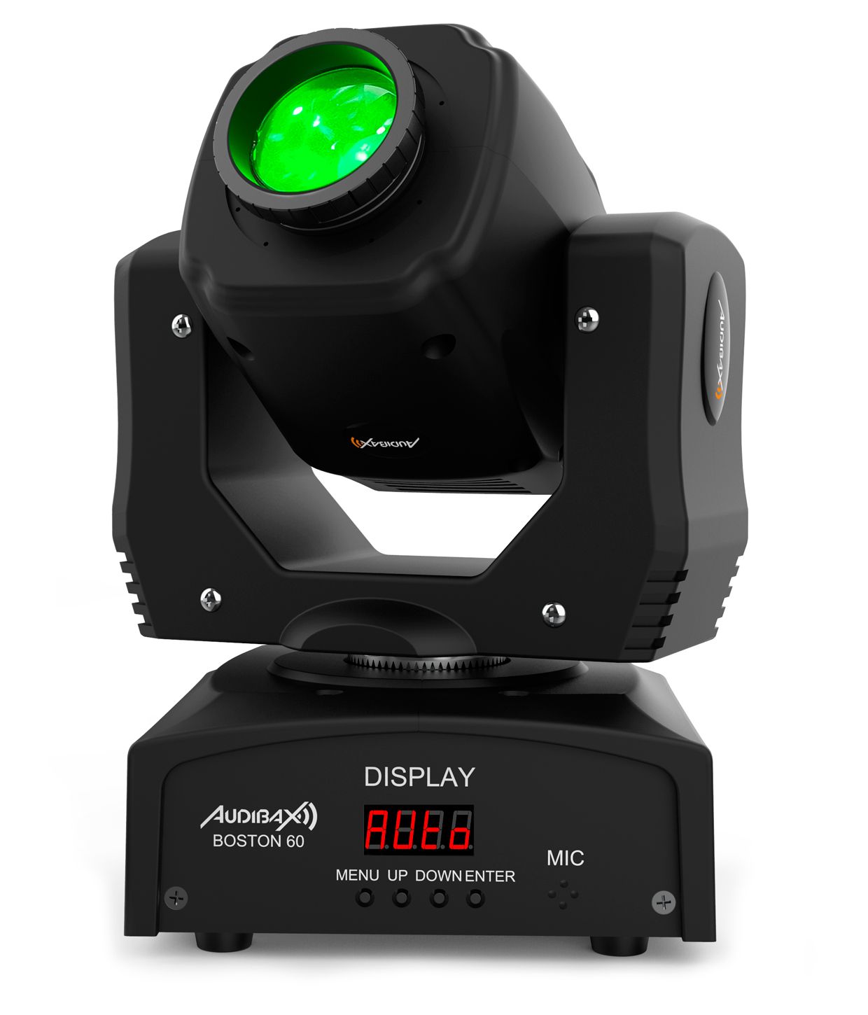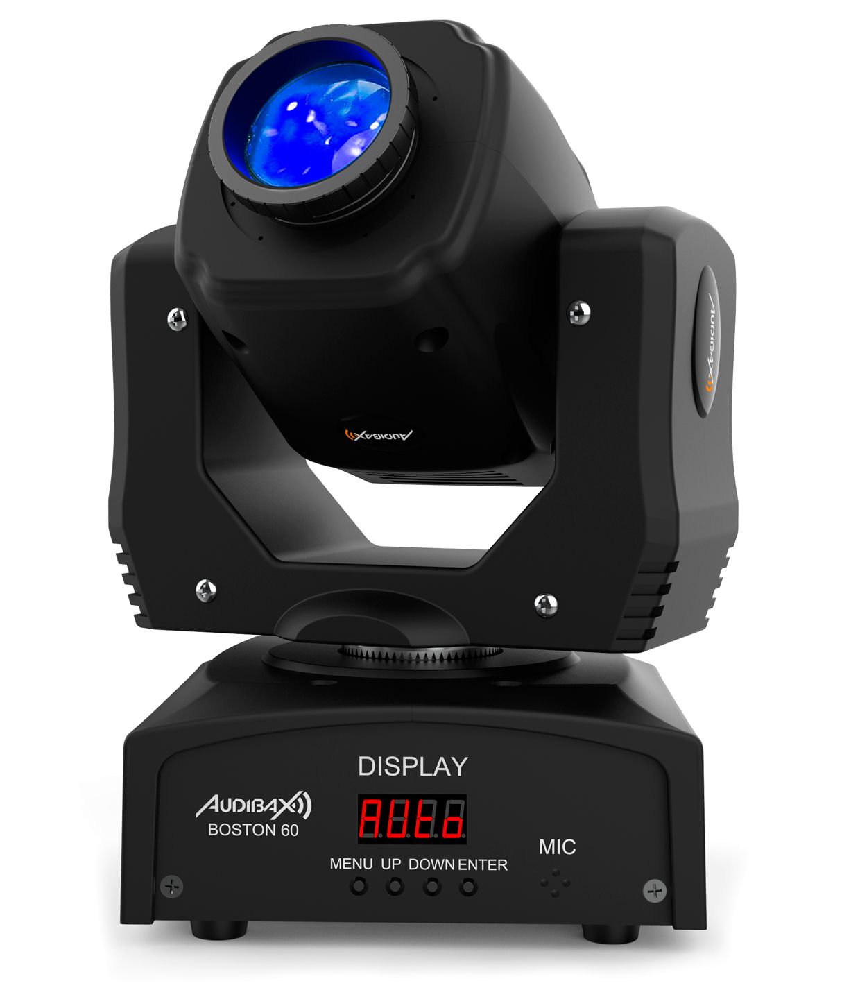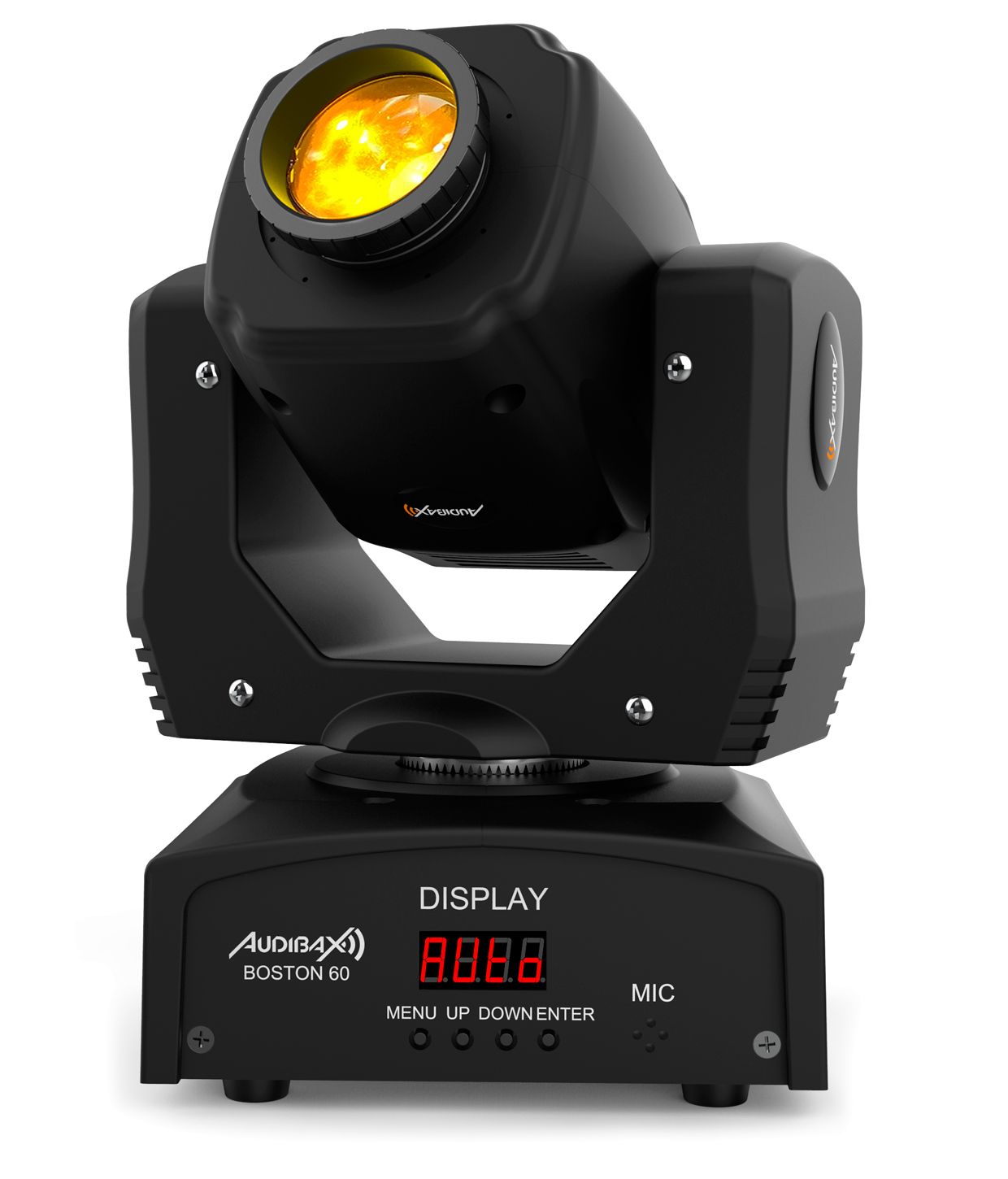 Audibax.Audibax Boston 60 est une tête mobile compacte dotée d’une source lumineuse LED de 60W. De taille moyenne, elle se distingue par sa puissance, sa légèreté et sa polyvalence, offrant de hautes performances en créant une source lumineuse personnalisable avec différentes couleurs et gobos.
