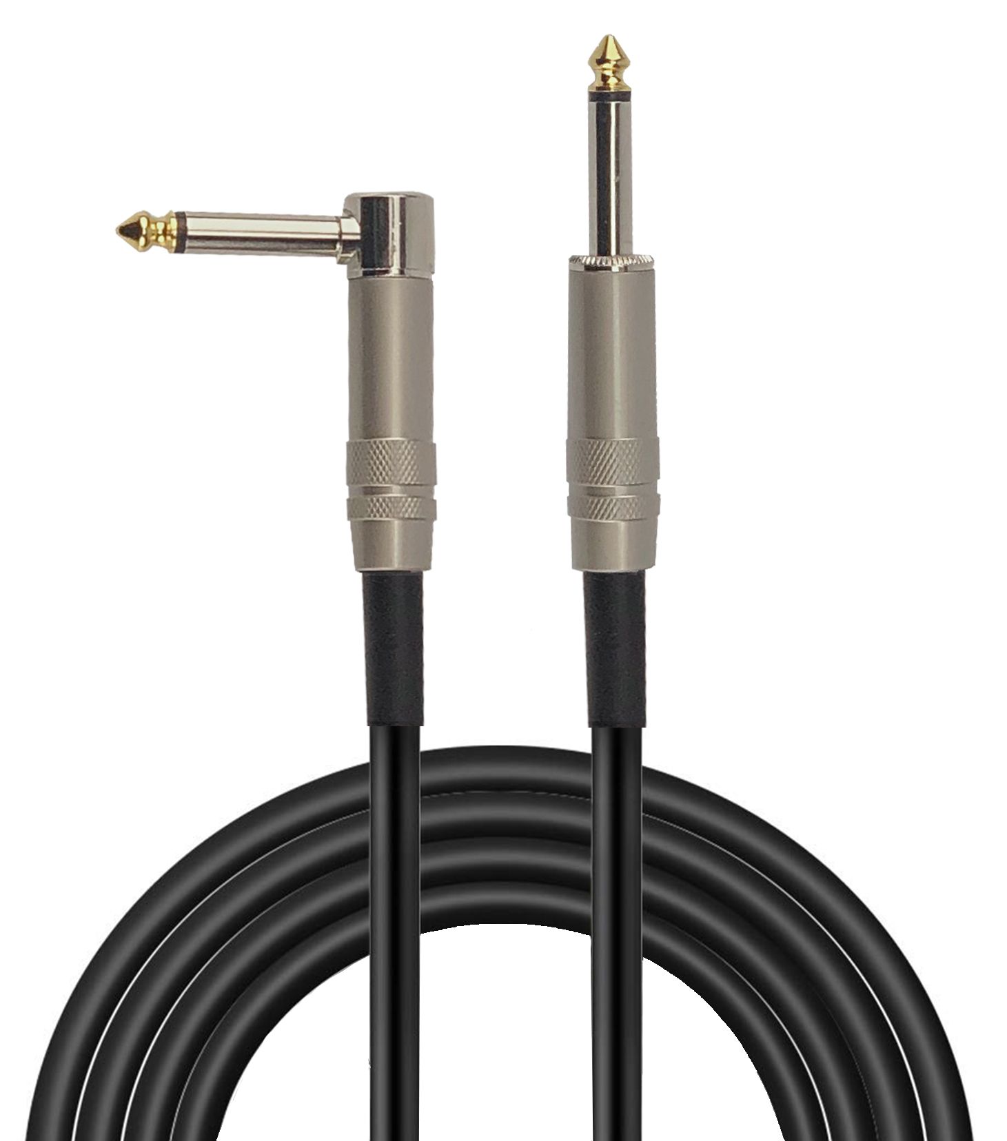 Audibax Gold Custom Guitar Guitar Cable Mono Jack to Mono Jack Angled 3 Metres Black
