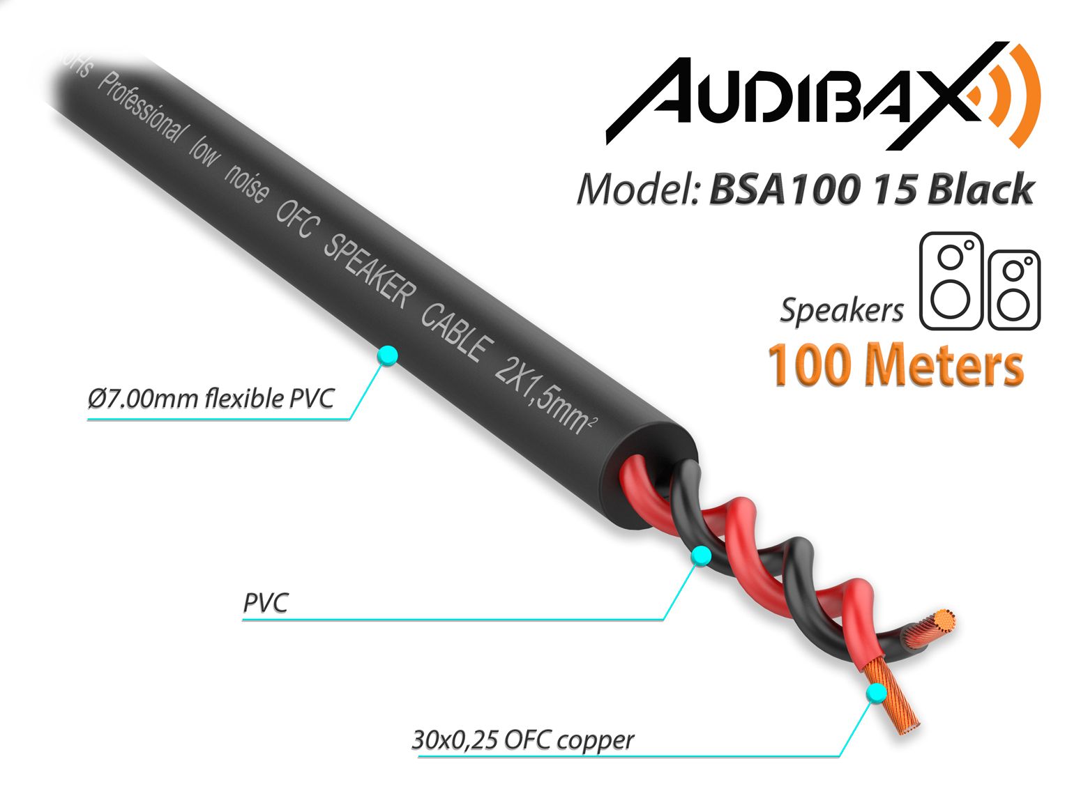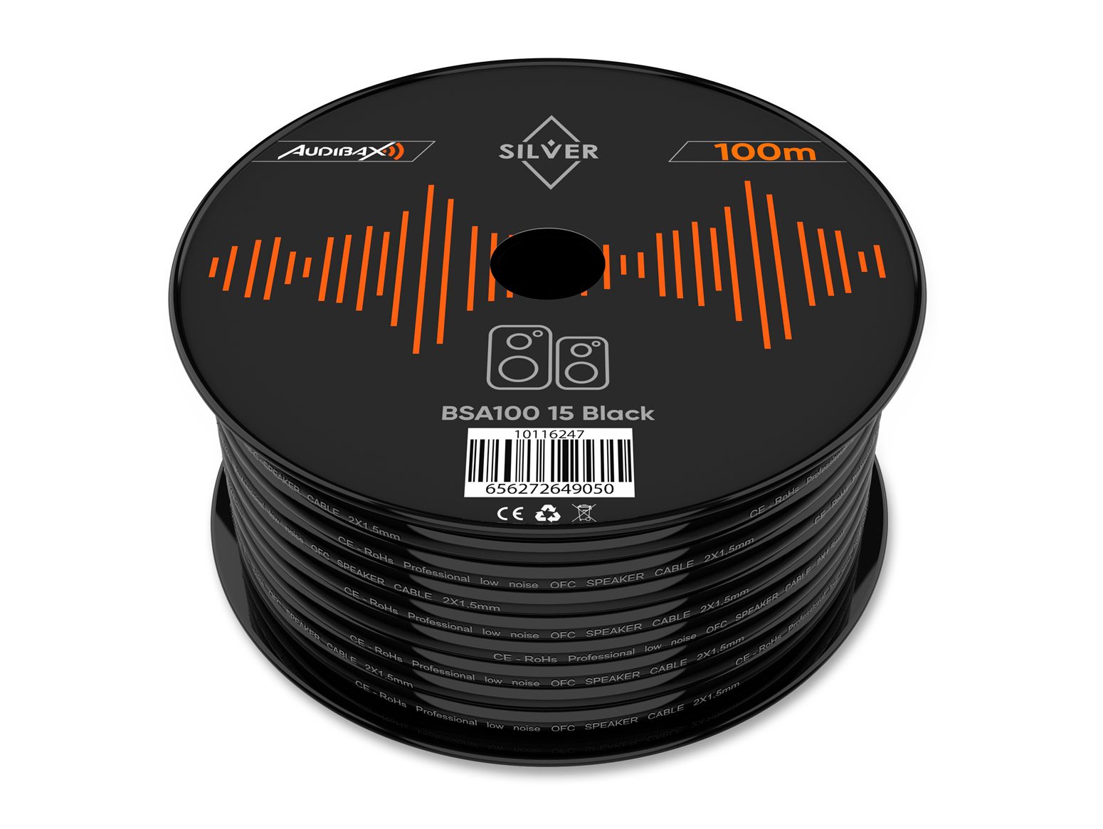 Audibax Silver BSA100 15 Black Speaker Cable Coil 100 Metres 2 X 1.5mm