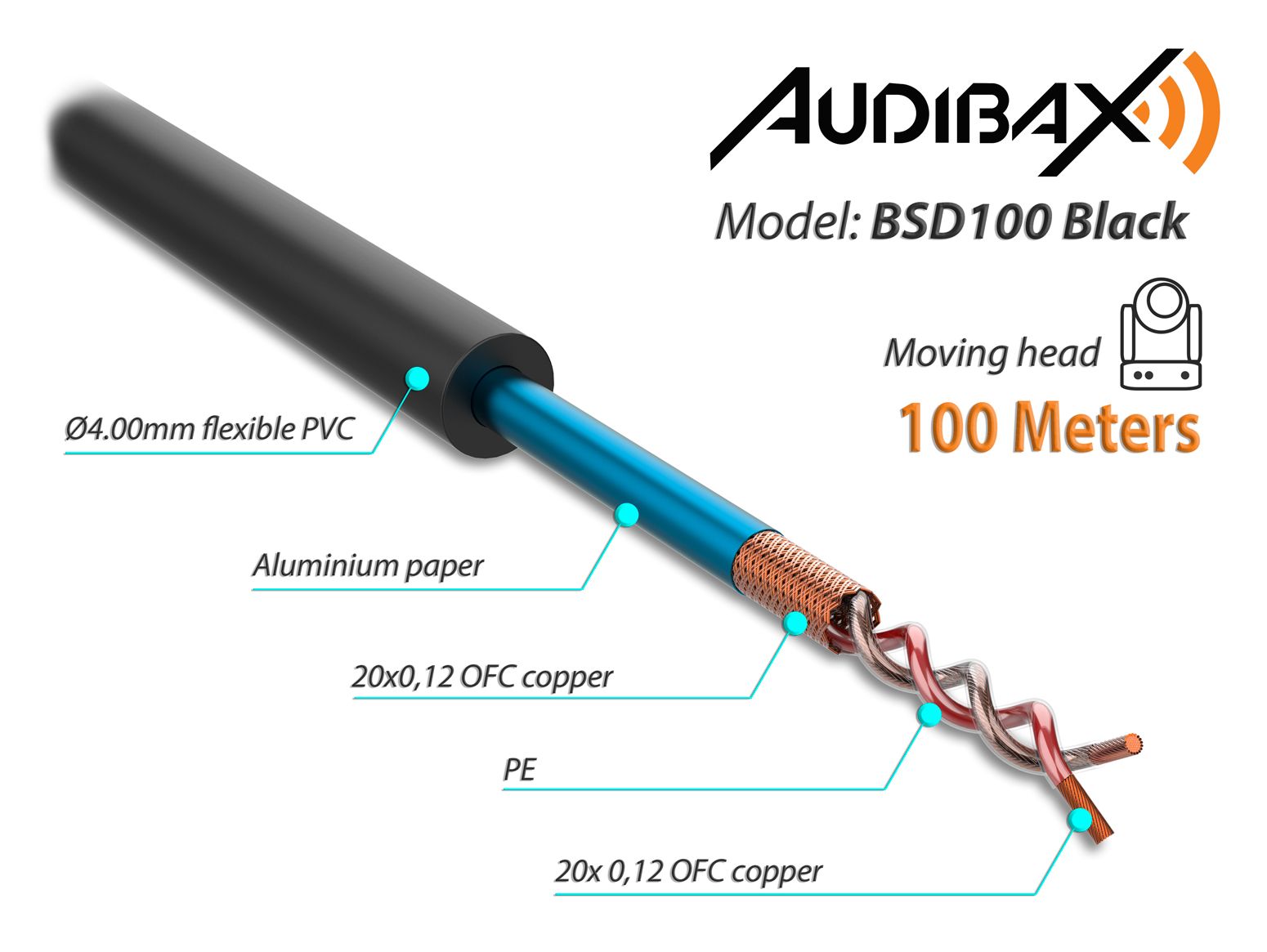 Audibax Silver BSD100 Black Coil DMX Cable 100 Metres