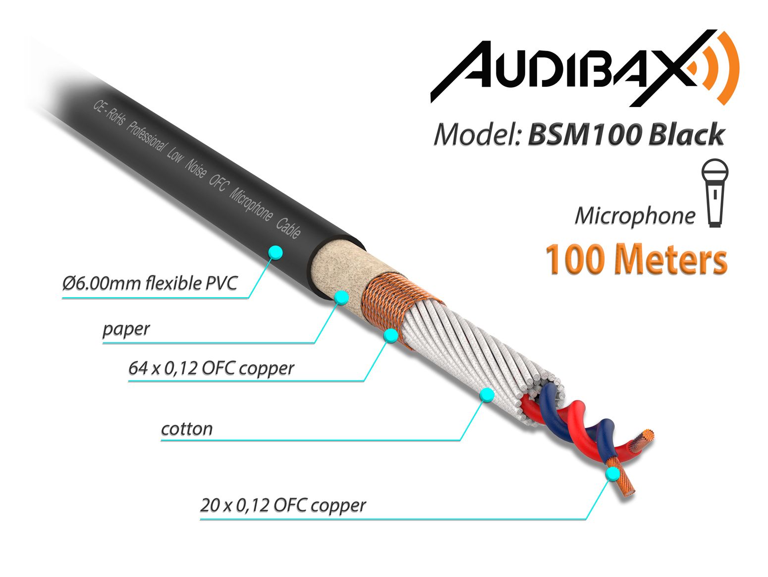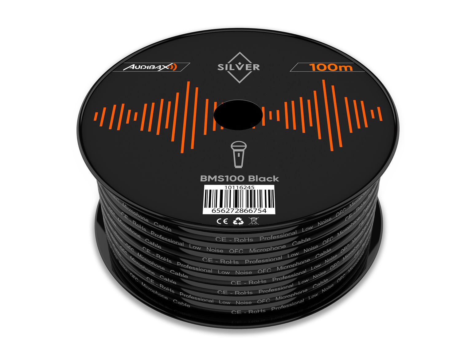 Audibax Silver BSM100 Black Coil Balanced Microphone Cable 100 Metres