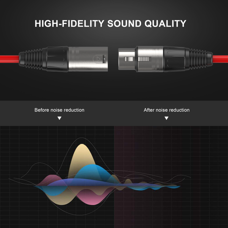 Audibax Silver Cable XLR Male to XLR Female 6 Metres Red