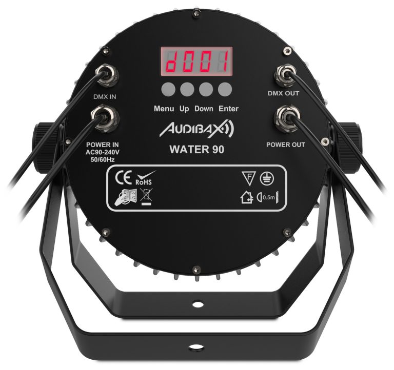 • Le Audibax Water 90 est idéal pour une utilisation en extérieur grâce à sa protection IP65. Il est équipé de 9 LED RGBW 10W 4 en 1, ce qui permet d’obtenir une large gamme de couleurs et d’effets.