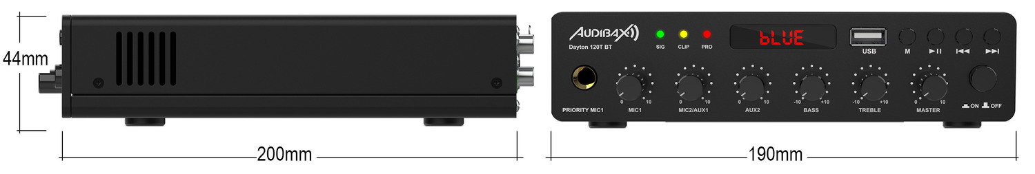 Selectable priority: AUX, MIC for volume